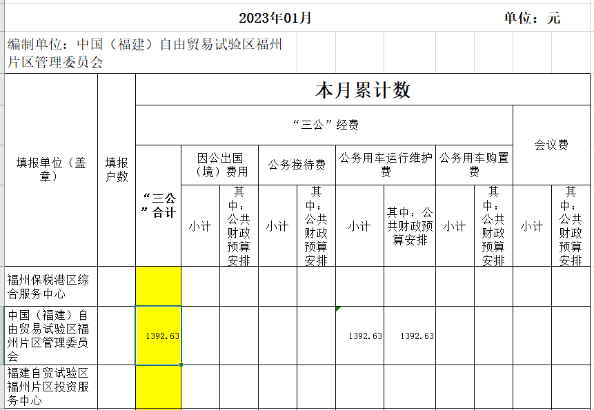 2022年12月“三公”经费支出情况