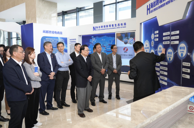 在海狮数智中心,调研组实地参观海狮集团总部办公区,听取相关负责人介绍,详细了解企业发展历程、产链融合、人才孵化、供应链分销集成等情况,并围绕如何做好跨境生态建设、全球布局运营等方面展开交流。